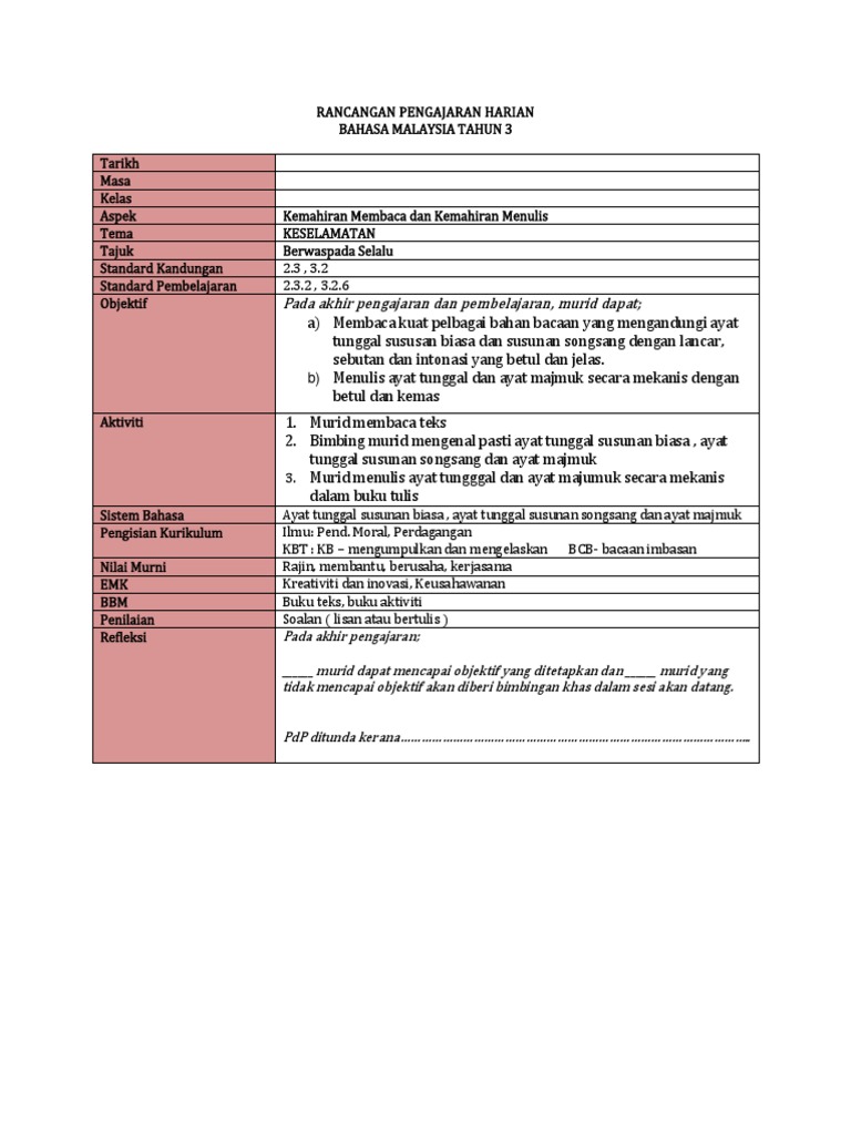 Ujian Selaras Bahasa Melayu Tahun3 Kindergarten Reading Activities Preschool Writing Primary Writing